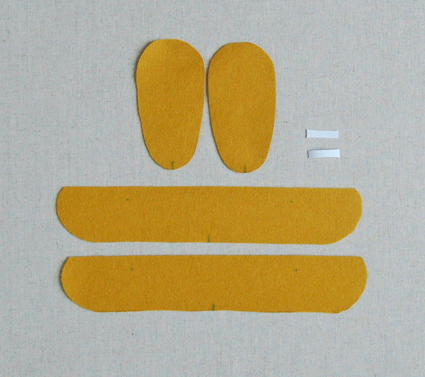 שימוש בתבניות שלנו. סיכת תבניות לצמר הרגיש; לגזור. כדי להפוך את תפר העקב, המעצב את החלק העליון של נעל הבית, לקפל את פיסה העליונה במחצית, ולתפור לאורך הקצה ישר.
