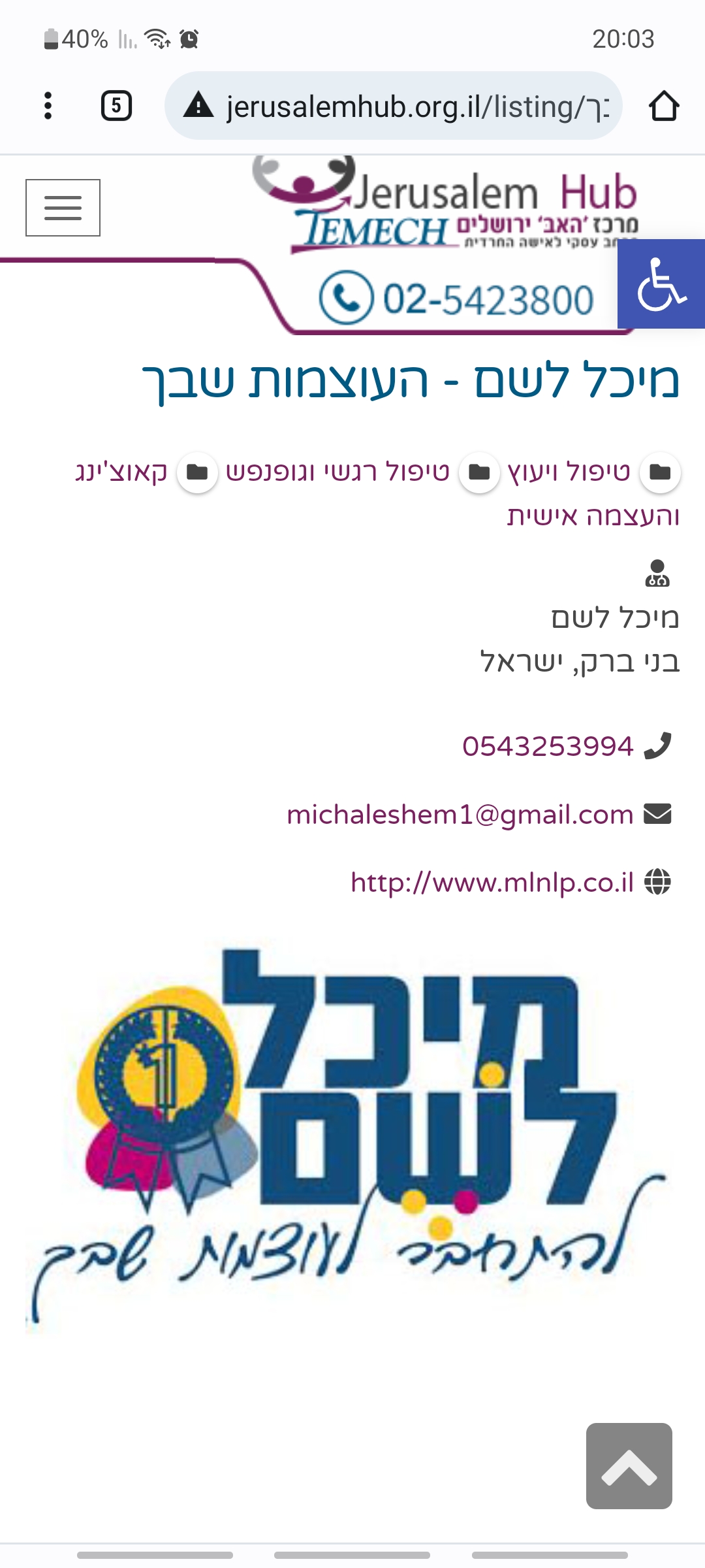 עזרה מחפשת מס' טלפון של מיכל לשם (מטפלת רגשית)
