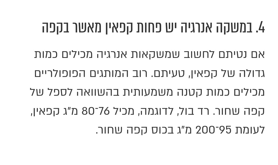 מבחינת עובדתית בקפה שחור יש יותר כמות קפאין ממשקאות ממותקים.