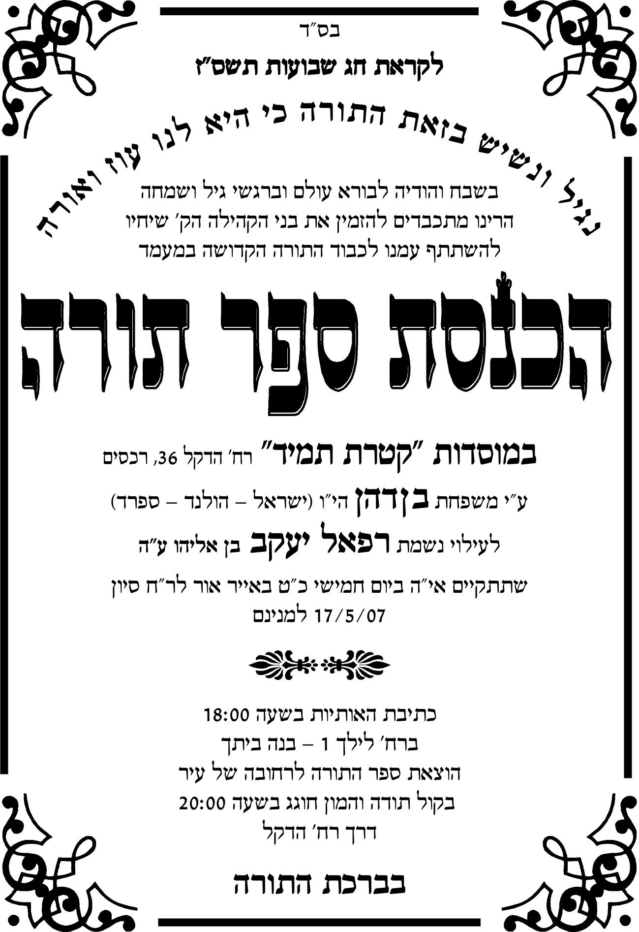 נוסח מה שכותבים על מודעת הכנסת ספר תורה