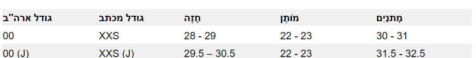 בכל מקרה כדאי לראות טבלת מידות כי כל חברה זה קצת שונה.