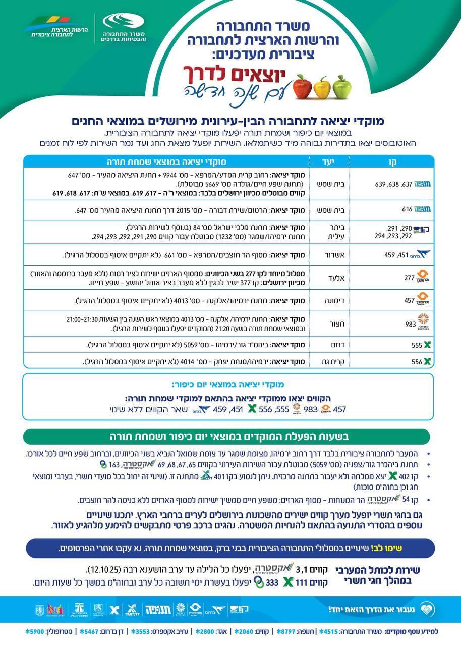 תח"צ מידע תחב"צ חגי תשרי תשפ"ו - עדכונים בלבד