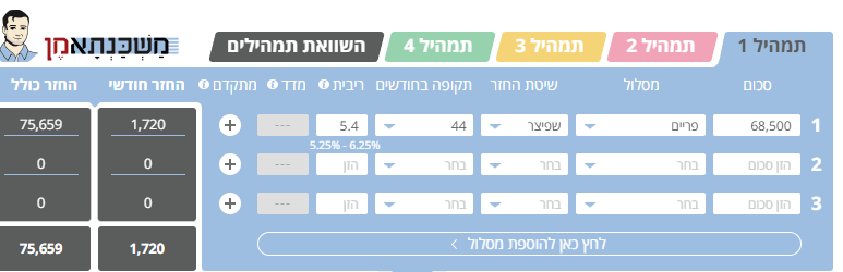 משכנתא ממוצעת של 1,000,000 ₪, עליה נקבע לצורך הענין ריבית של 6% שנתי [סתם לשם הדוגמא..].