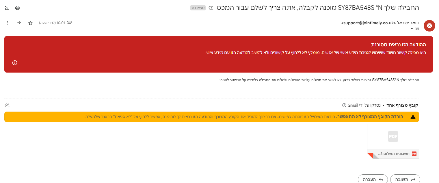 עכשיו קיבלתי עוד מייל כזה... אולי למי שלא מתייחס הם שולחים שוב כל שעה...