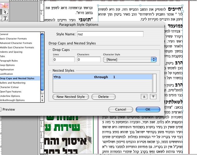 Nested Style. סגנון תו המוגדר בתוך סגנון פסקה, להגדרה מסויימת.