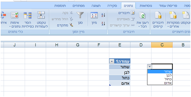 לדוגמא, אם אני עורך טבלת נתונים על אנשים, בעמודת 'עיר מגורים' כשאני ילחץ על תא יפתח לי חלונון עם האפרשויות 'ירושלים', 'ב"ב' ו'מ"ע'.