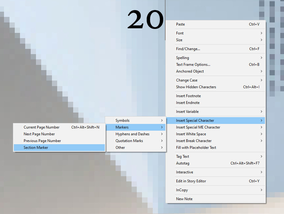 2. בעמוד שבו רוצים את המספור מכניסים את המספור ה"רגיל" (קונטרול-אלט-שיפט-N) ואח"כ מוסיפים בלחיצה ימנית את המידע הדרוש (מספר עמוד הבא או מספר עמוד הקודם) ככה: