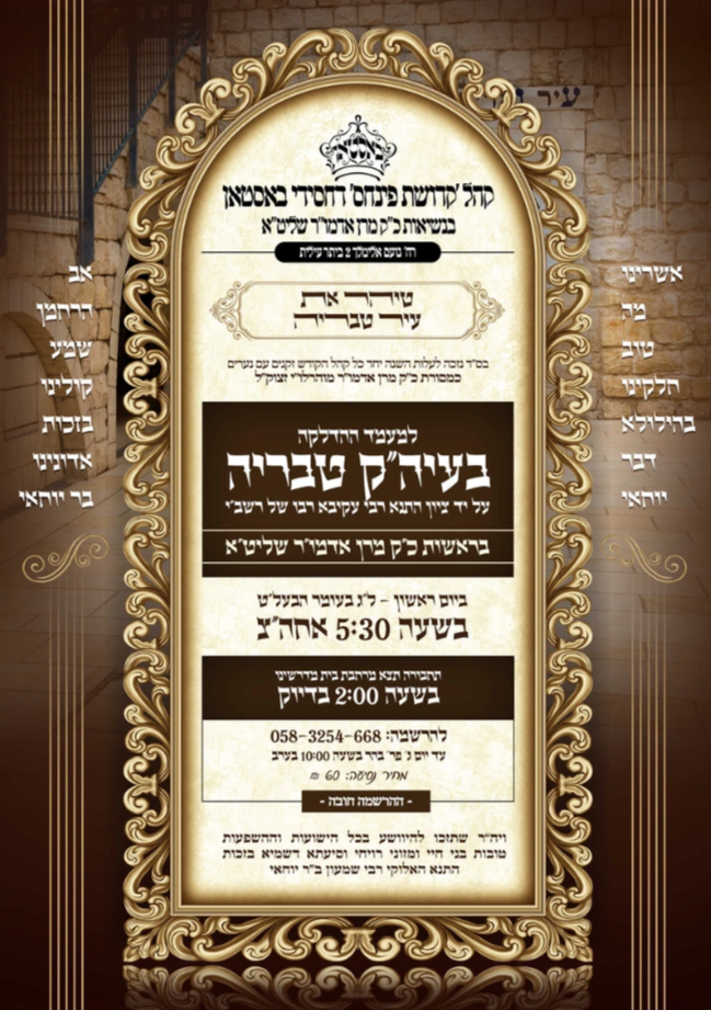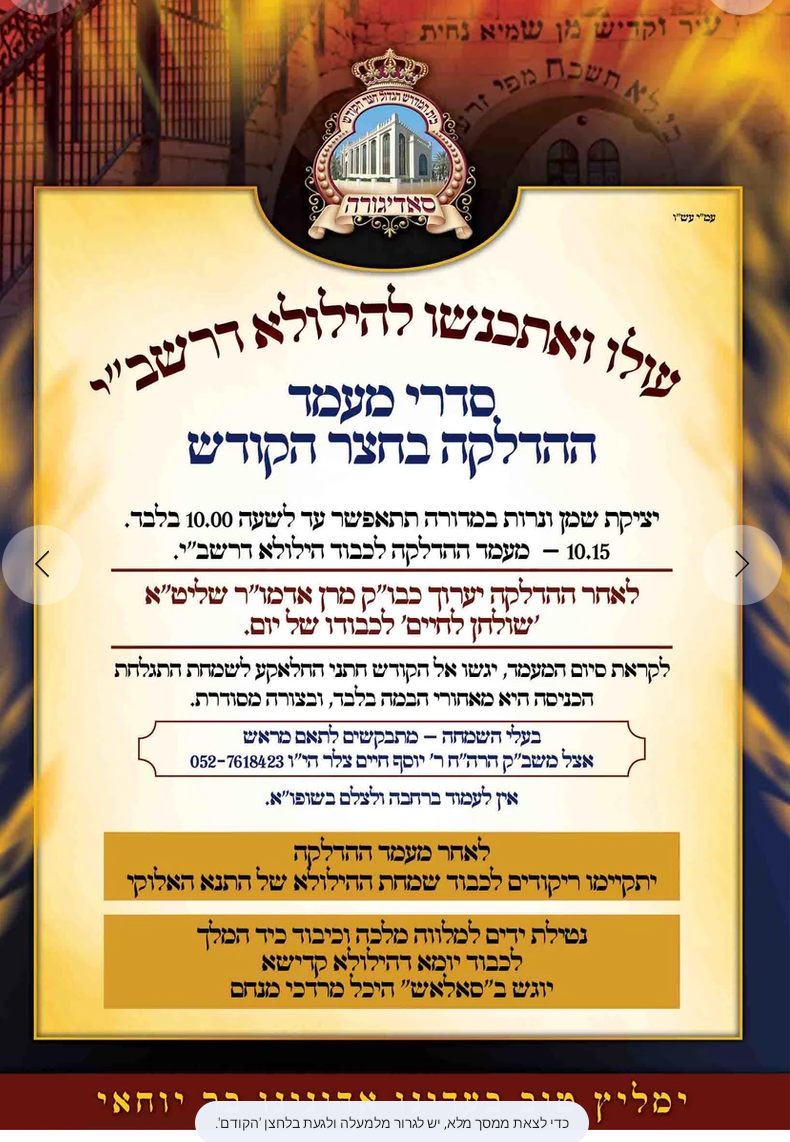 נתי קאליש חושף כעת בפרסום ראשון ב'קול חי', כי מרן האדמו"ר מבויאן יקיים הדלקה ברוב עם במוצאי השבת בירושלים.
