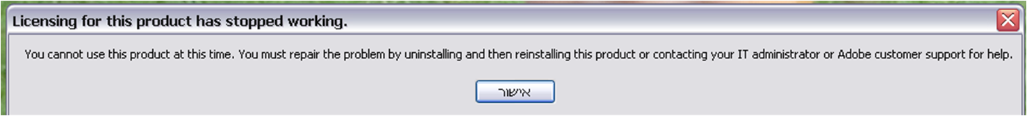 כללי מישהו יודע מה עושים? האדובי מחזיר לי הודעת שגיאה זו.