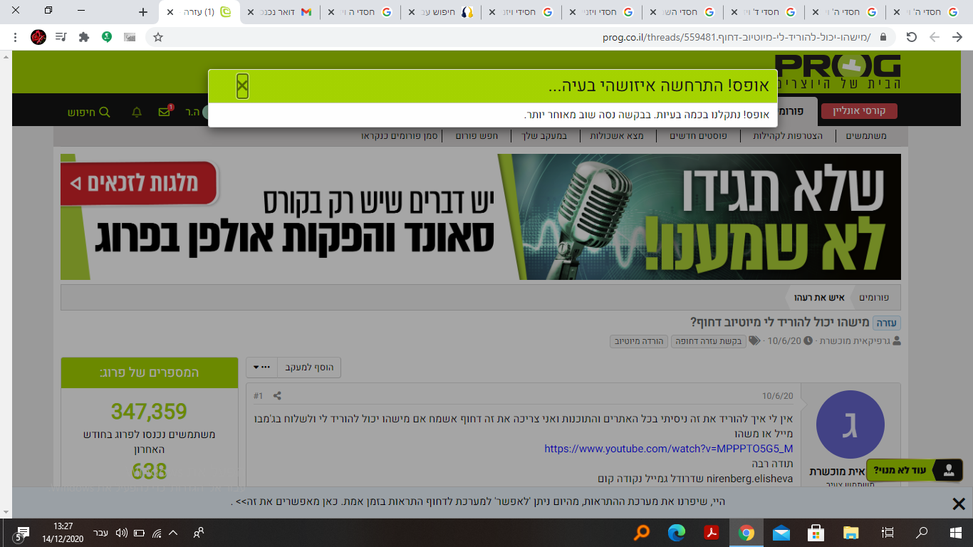 2. בקשר לפרוג, כל כמה דקות כותב לי שיש בעיות, ולא נותן לי להגיב. אשמח אם תוכלו לסייע.
