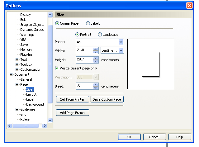 לחצי על Page ושם יש לך את ההגדרות של דף איי 4, ושהמידה תהיה ס"מ וכו.(כמו בצילום 2)