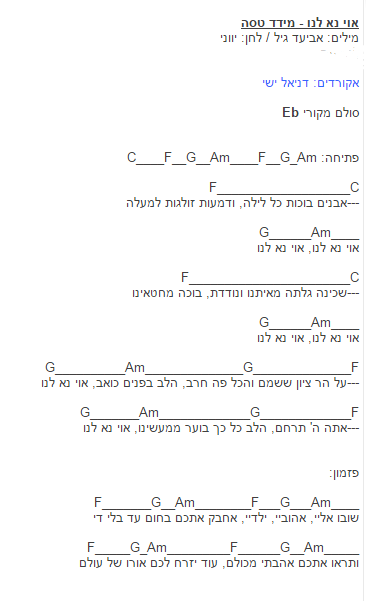יש לי גם אקורדים לשירים הבאים. תכתבו אם אתם מעוניינים: