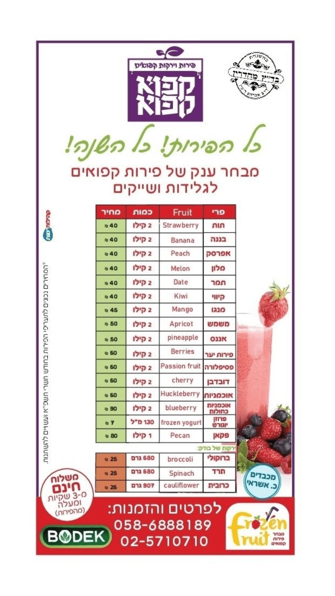אפשר להשיג פירות קפואים באיכות מעולה ובכשרות הרב רובין במשלוח עד לבית.
