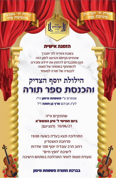 בהתחלה הוא רצה בסגנון האדום זהב- וככה נשלח ההזמנה האישית לתורמים