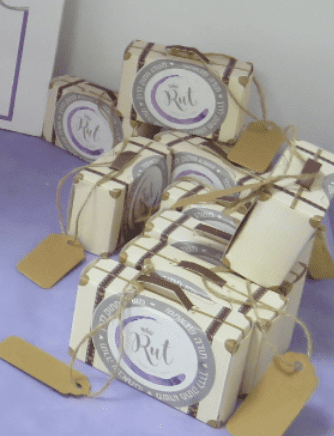 ועליהן הדבקנו מדבקה עם הלוגו והכיתוב: "תודה שבאתם - משהו מתוק לדרך"