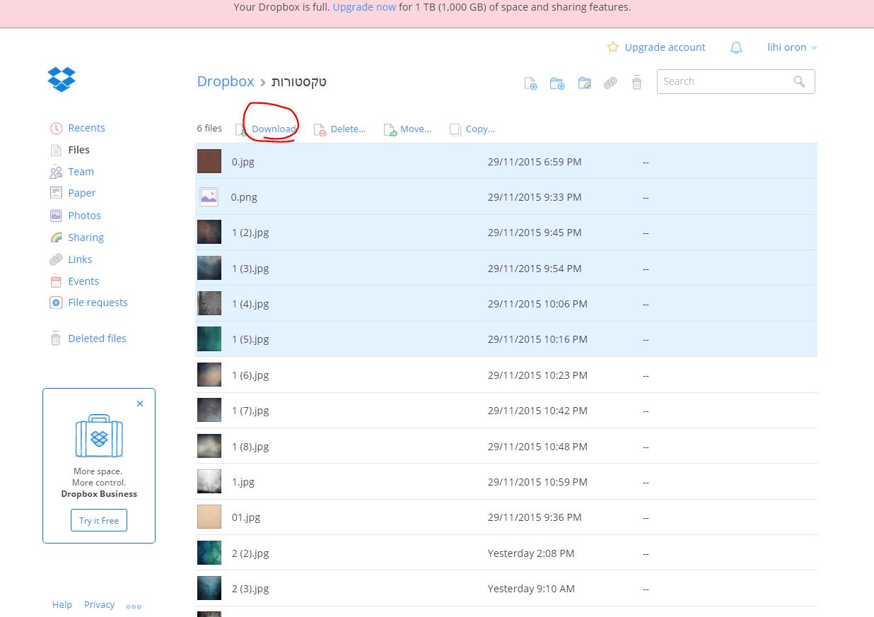 נראה לי אתן צריכות להיות מחוברות לדרופבוקס. למעלה יש כפתור הורדה.