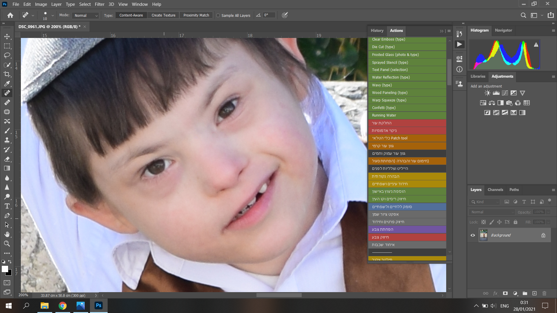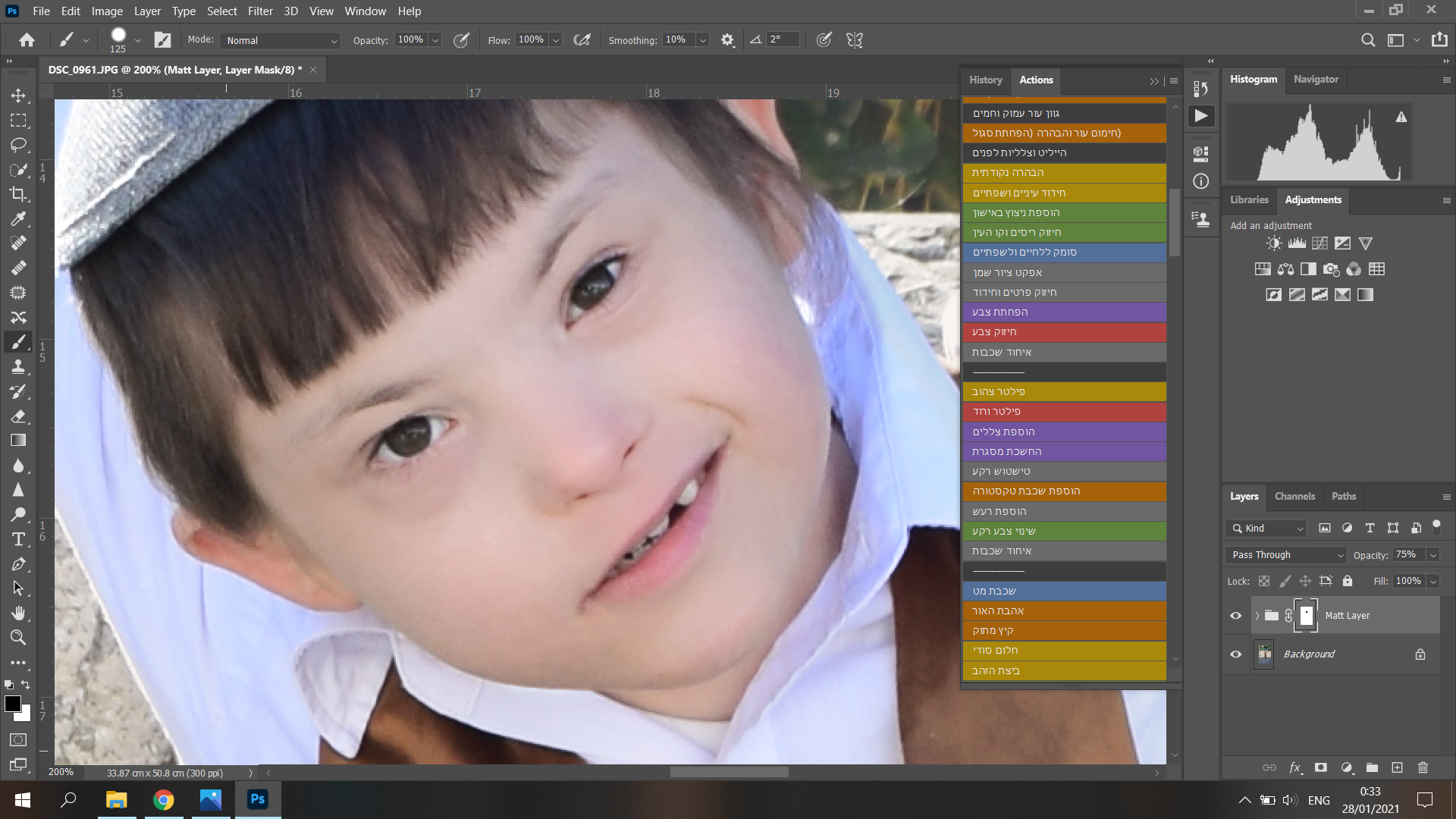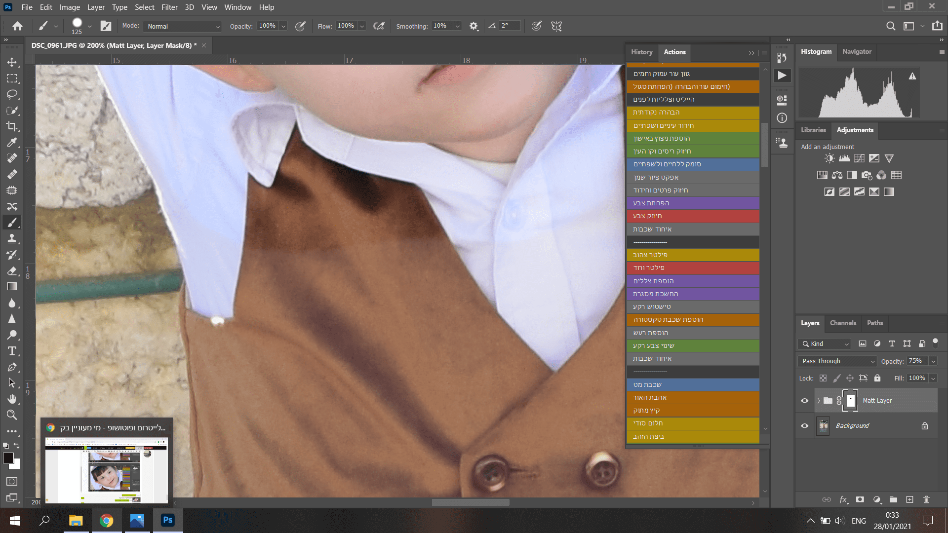 אני לוחצת על האקשן והוא פותח לי שכבה חדשה... ועם המברשת אני עוברת בעדינות באיזור של הפנים... ומורידה שקיפות לפי הצורך..