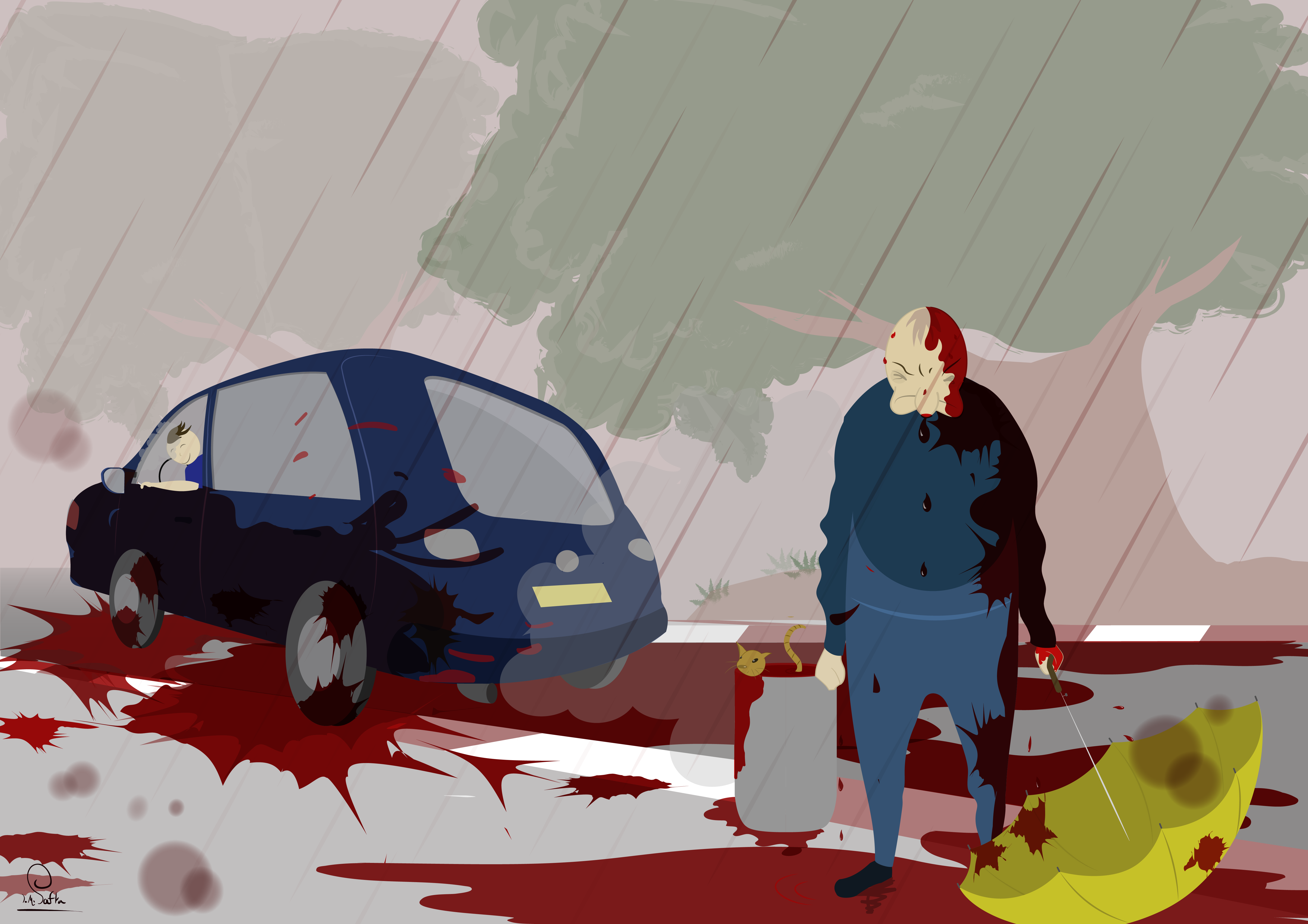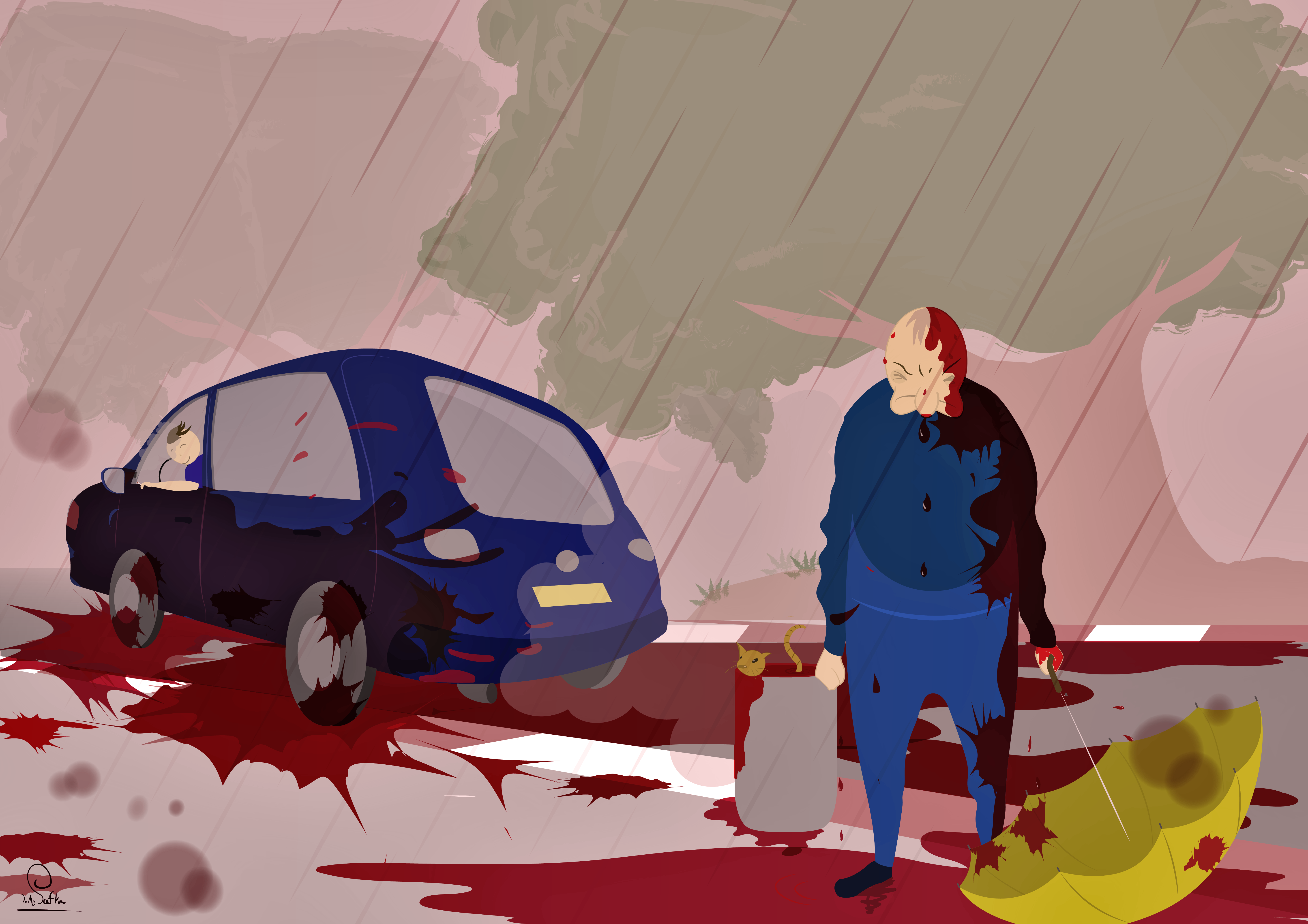 האוטו כנראה נעצר והמכה התחילה שנייה לפני ....