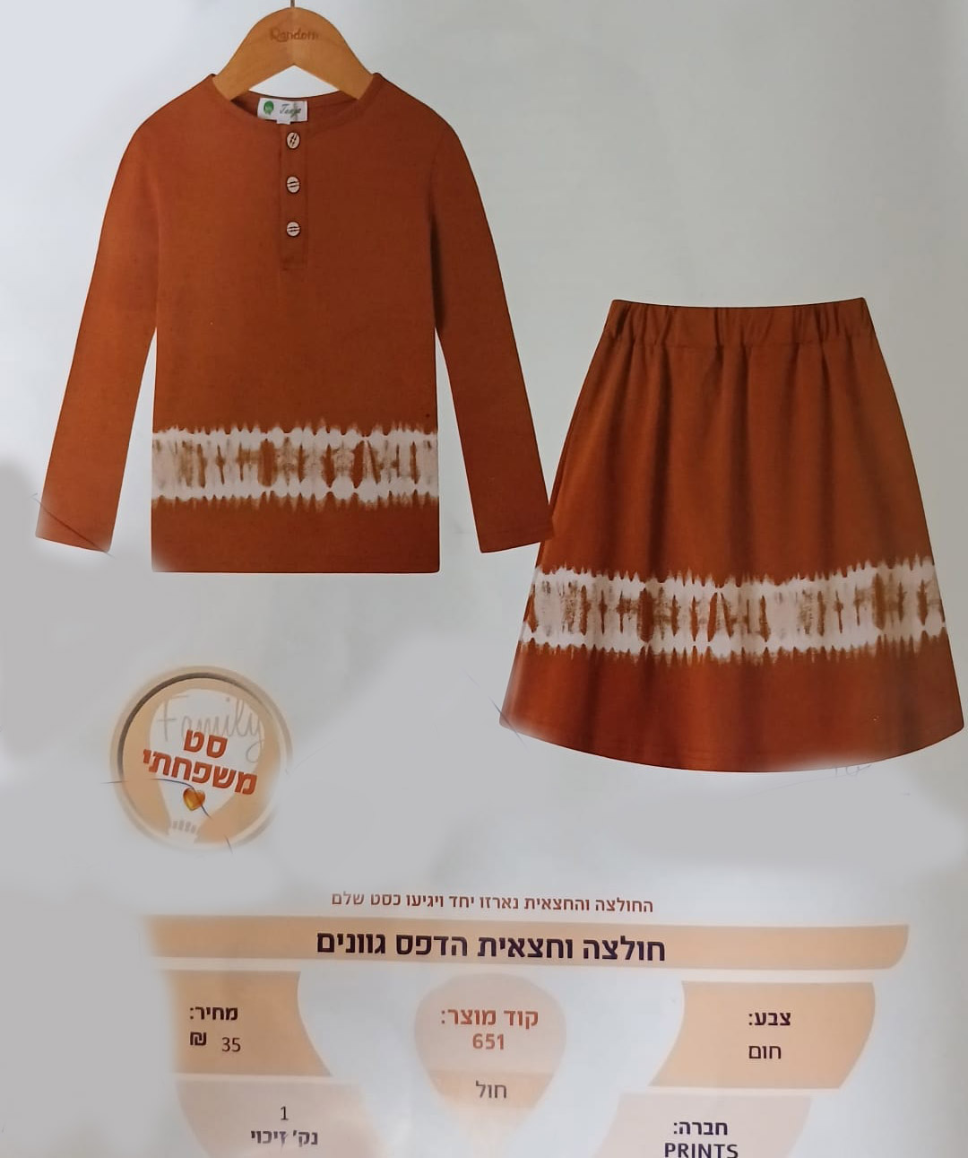 חולצה וחצאית הדפס גוונים, קוד מוצר: 651 צבע חום - מידה 10 [או 8]