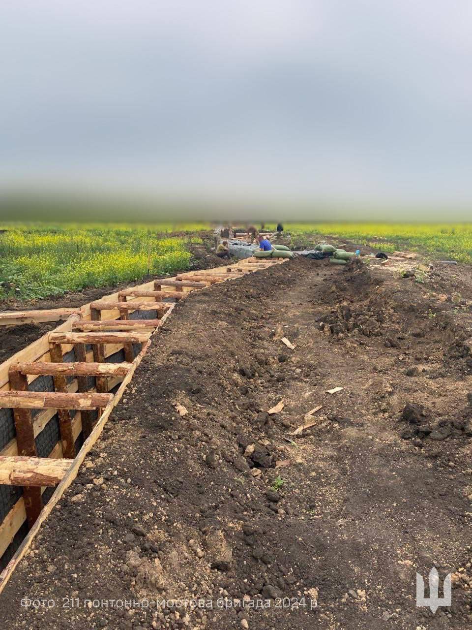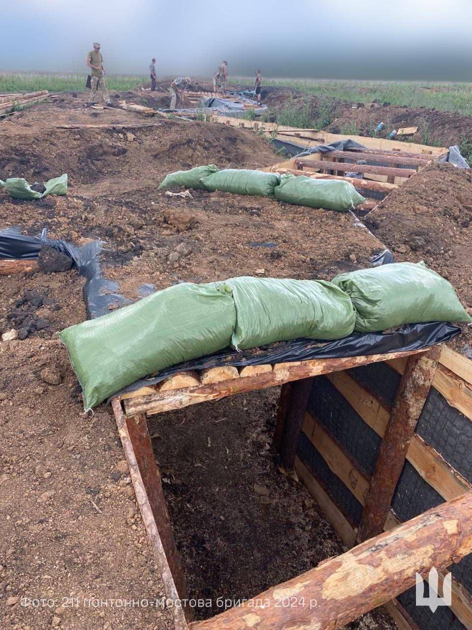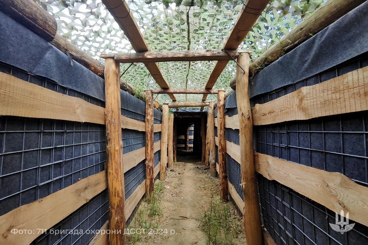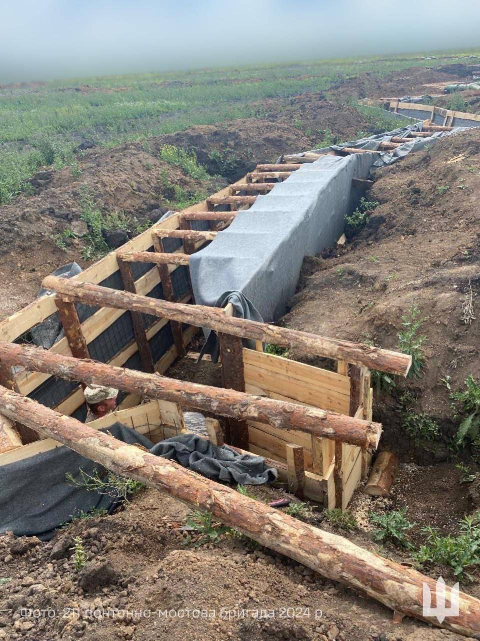 שוחות אוקראיניות עם הגנה מפני מל"טים מסוג FPV.