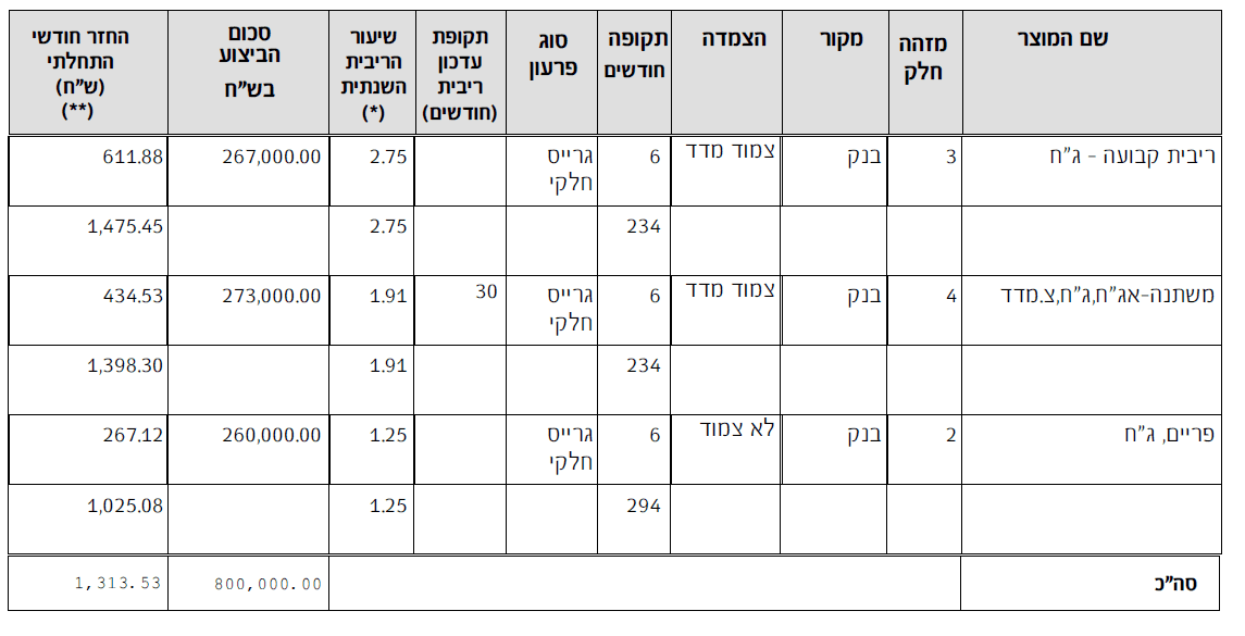 300000 משתנה צמוד 2.5 ל30 שנה [את זה אני אמור לפרוע לאחר שנה]