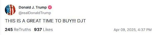 ניתוח של הגרפים מעיד על אופציות call שנרכשו בצורה מסיבית עוד לפני שטראמפ פרסם הודעה בחשבון ה Truth שלו על כך שכדאי לקנות מניות...