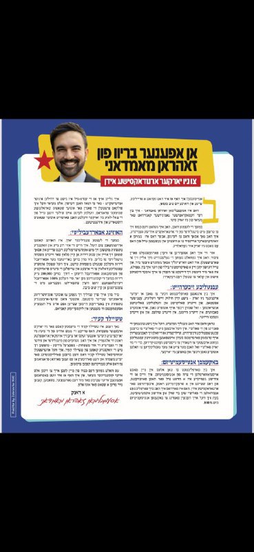 המועמד המוביל לראשות עיריית ניו יורק זוהראן ממדאני בפנייה ביידיש לקהילה החרדית בעיר לקראת הבחירות. במכתב שפרסם ממדאני בעיתונים מקומיים הוא מתחייב להיאבק באנטישמיות ולקדם מדיניות כלכלית שתסייע לחרדים בעיר.