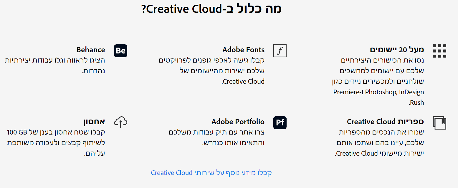 40% אחוזי הנחה על רכישת מנוי חודשי לתוכנות Creative Cloud לשנה ראשונה