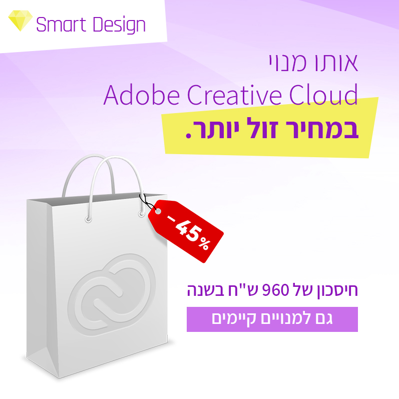 פתחתי רשימת תפוצה של עדכונים על מבצעי Adobe Creative Cloud במחיר זול יותר למנוי - חיסכון של 960 ש"ח בשנה, לתמיד!