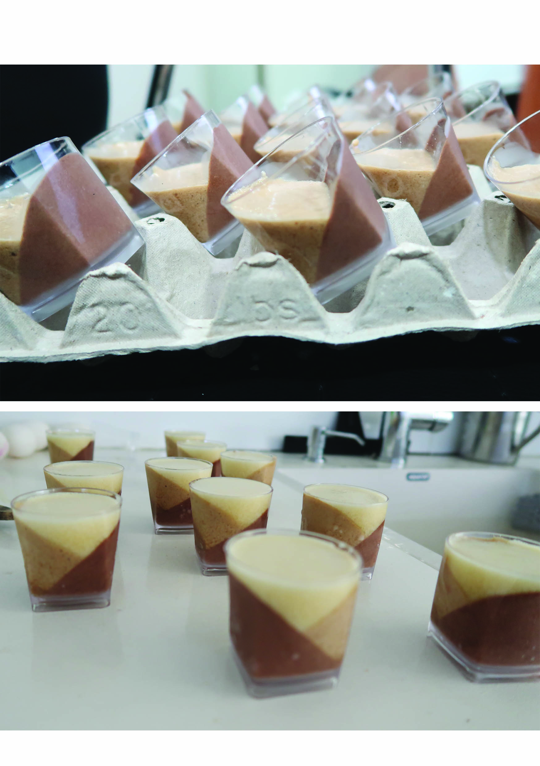 ואז לוקחת כמה עוגיות חותכת לרבעים ושמה רבע אחד על כל כוסית