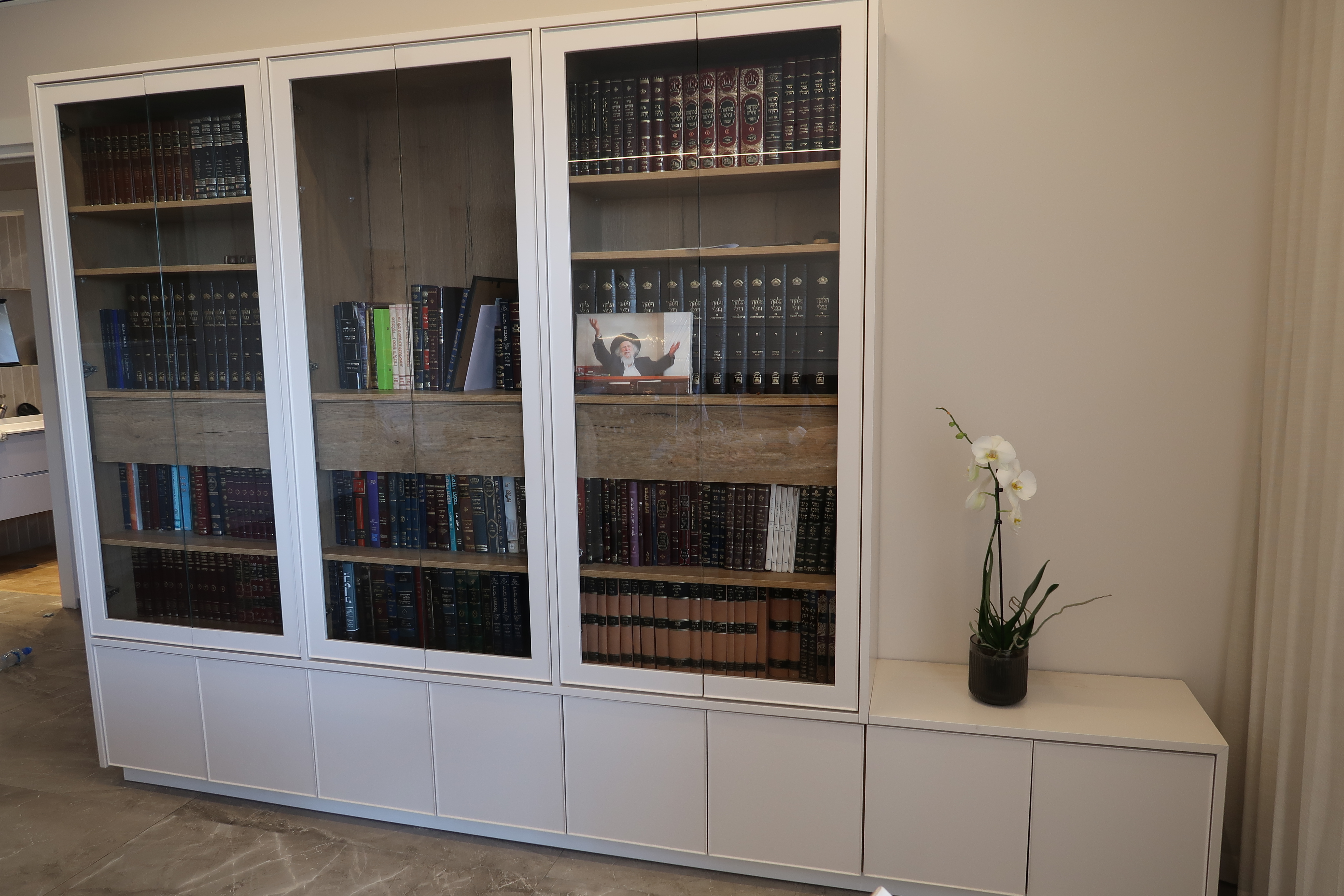 והתכנון היה לסגור את כל הספרים + ויטרינה בזכוכית עם מסגרת לבנה סגנון כמו בתמונות המצורפת