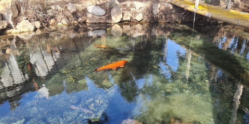 עם מים זורמים נקיים וצלולים שרואים את הדגים,