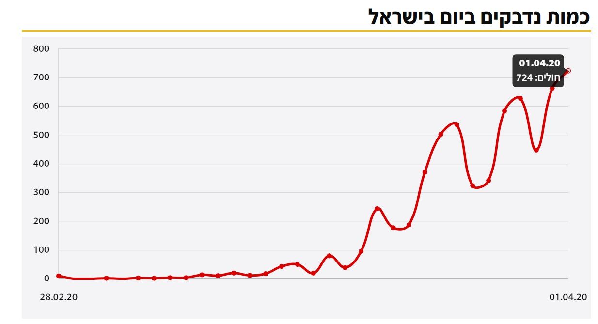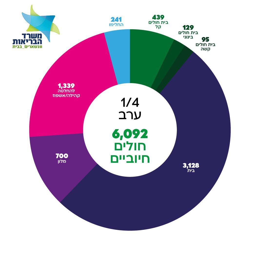 מיטל יסעור: ‏בני ברק רושמת תוספת של 177 איש במספר החולים- בעיר יש נכון להבוקר 900 חולים. אתמול- 723. ירושלים עלתה מ-807 חולים ל-916, בתל אביב- מ-301 חולים ל-324. חולון- מ-83 חולים ל- 92, בית שמש עלתה מ-92 חולים ל-106.