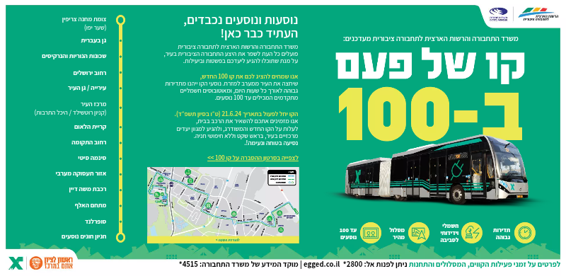 קו 100 שמצורף כאן, זה קו חדש שיש אותו על 10 דק', בהשקעה מטורפת גם של אוטובוסים חדשים וגם תיקצוב של הקו עצמו