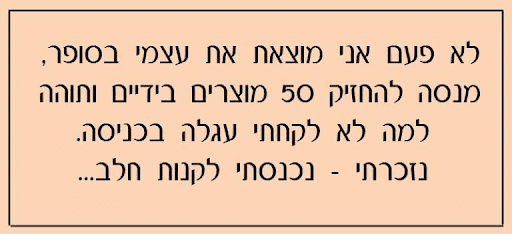 לא נכנסתי להוצאות המטורפות שקצת עוברות לידכם. למה שתקנו מצות יין או חסה או נייר כסף לציפוי המטבח