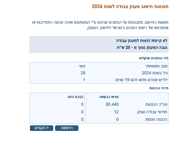בשנה שעברה לא היינו זכאים עקב חודשי עבודה מועטים או משהו כזה כגון הכנסה נמוכה מדי אך כרגע לפי ההכנסה אמורים להיות זכאים.