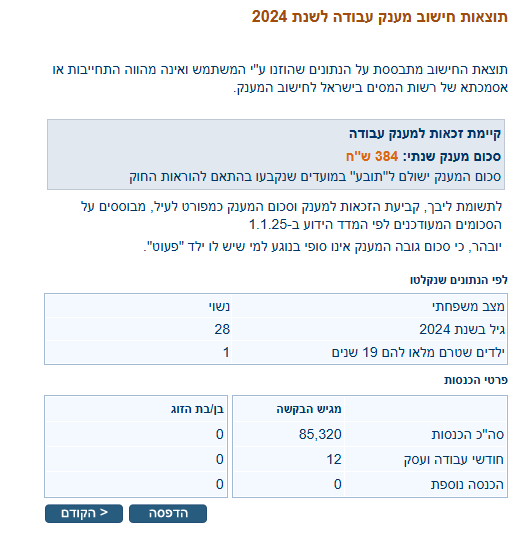 לי ולאשתי ישנה זכאות לפי מבחן הכנסה למענק עבודה מספר שנים (2020-2024)