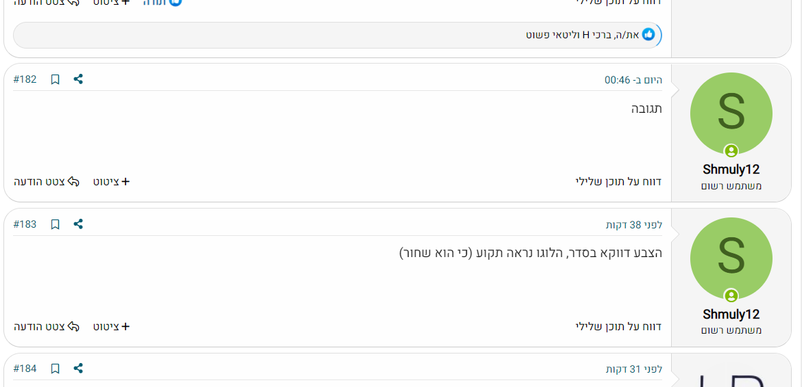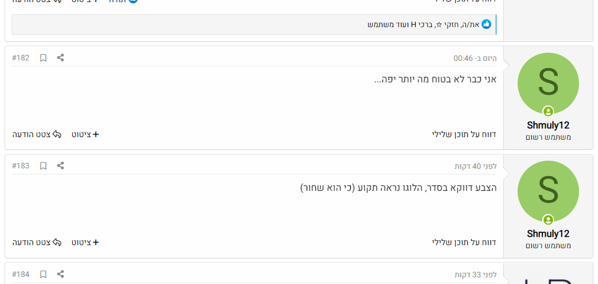 שעל כל ציטוט כשמרחפים על השם שציטטו ממנו יראו את שעת כתיבת ההודעה המצוטטת