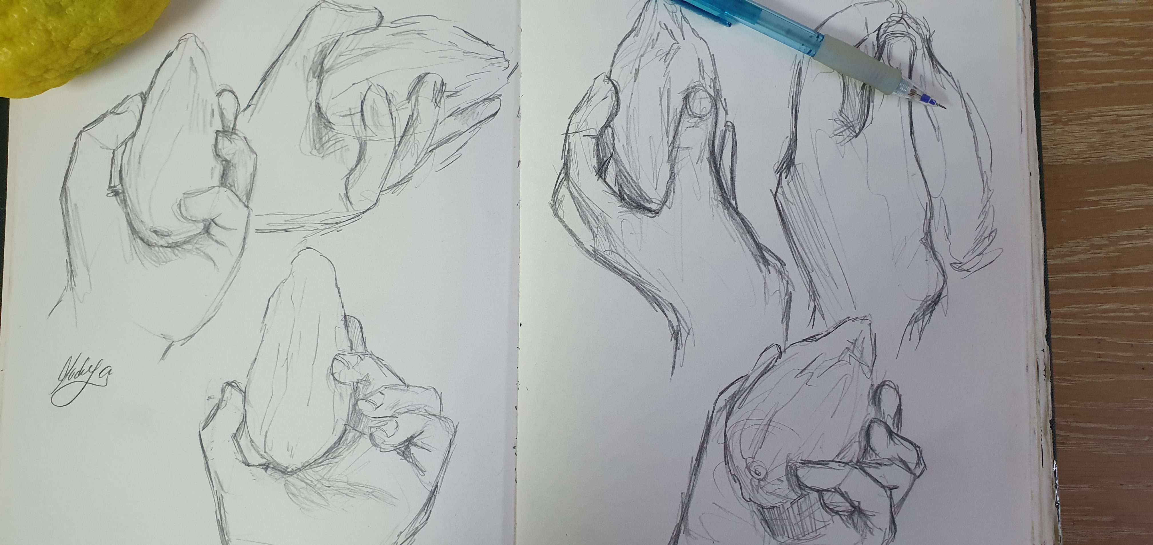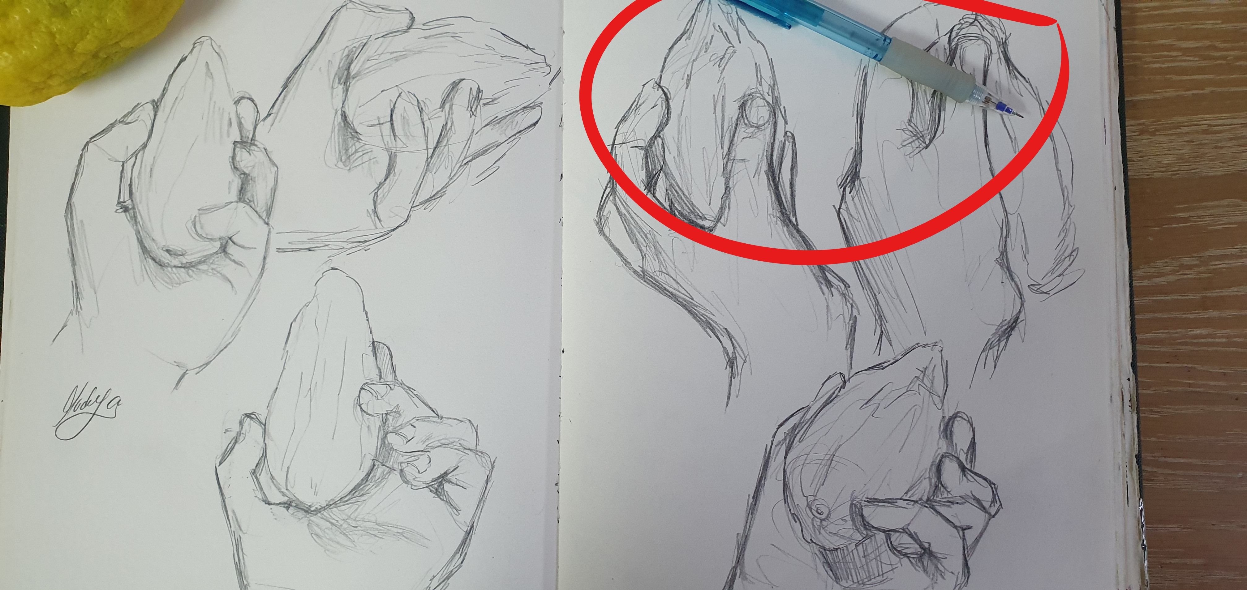 ואז ראיתי את האתרוגים ( הפסולים ...כן ) והתחלתי לצייר את היד שלי מהסתכלות