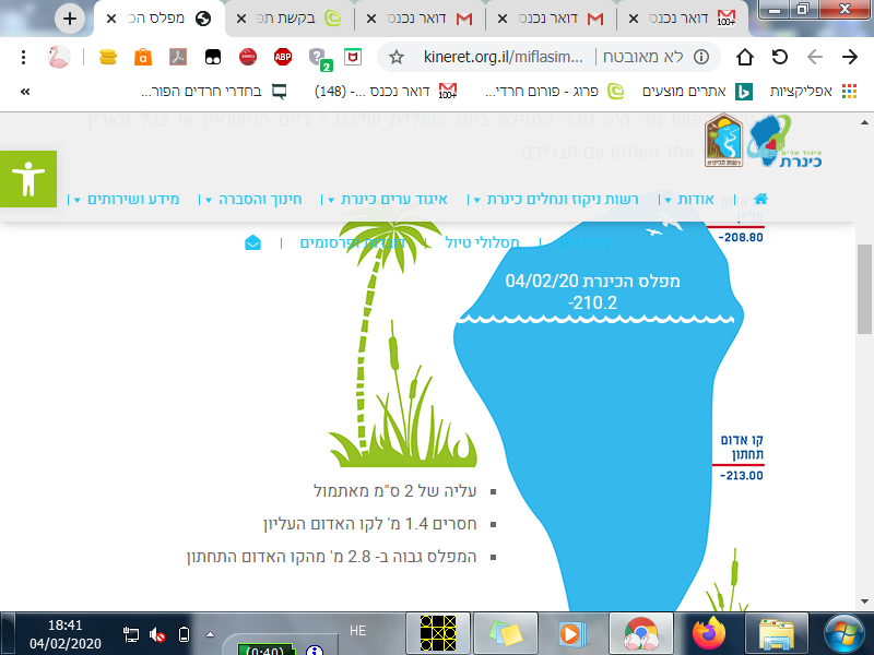 ממתי הנתונים האלה? כנראה תאריך ישן.מוזר, אני כל הזמן שומעת שהמפלס בעלייה