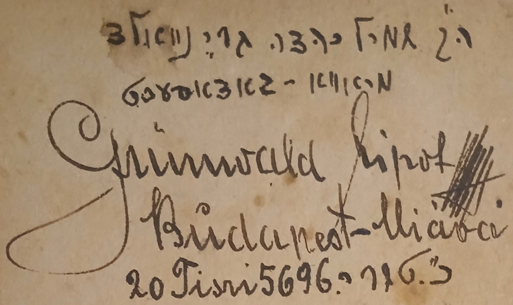א. החתימה בלועזית היא אכן גרונוואלד ליפוט, הכתובת - בודפשט מיאווא. (אמי ע"ה לימדתני בילדותי את הכתיב ההונגרי וסגנון אותיות זה מוכר לי מאז.)