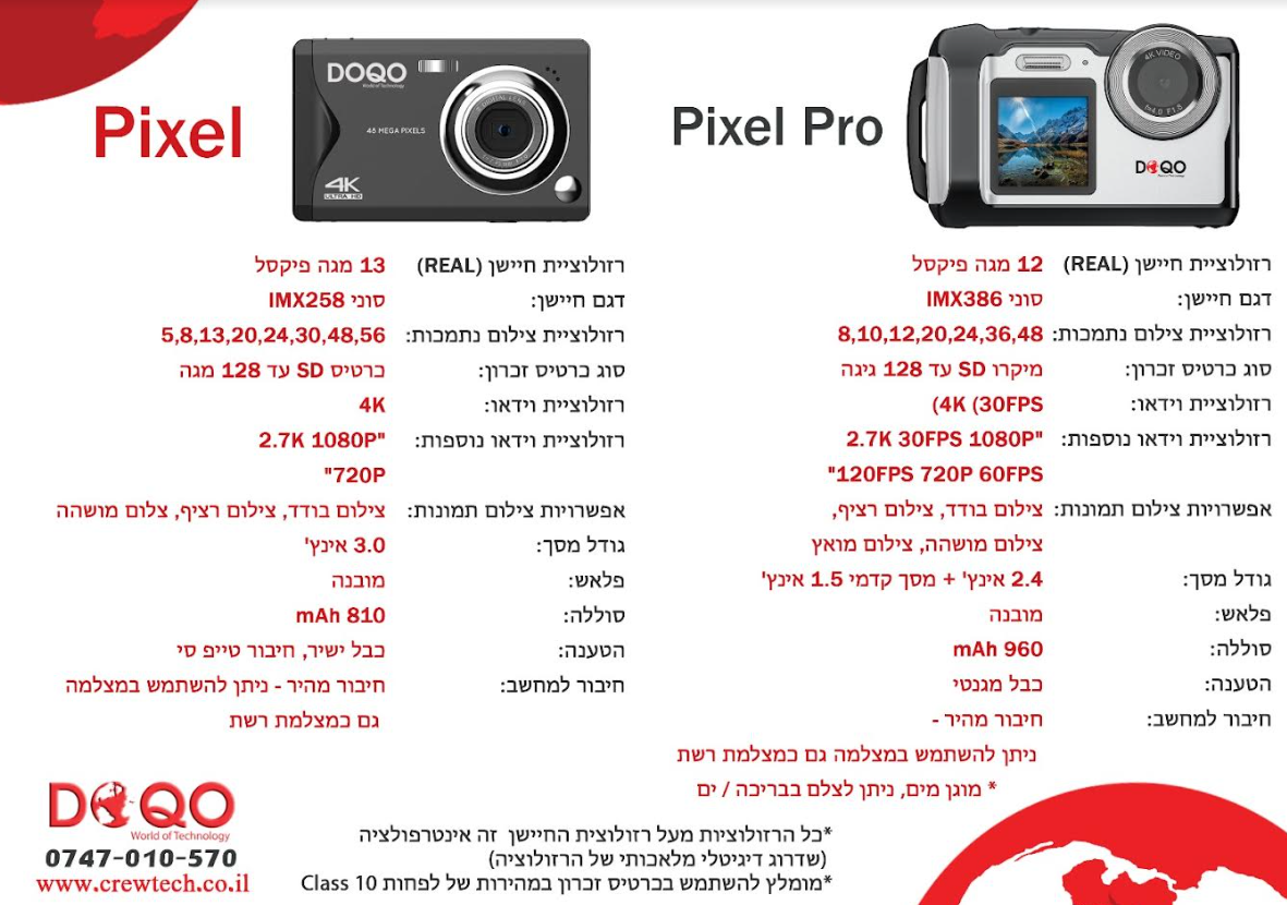 חברת DOQO שמוכרת מתחום הנגנים וציוד מחשבים היקפי פיתחה בדיוק בגלל הצורך של הציבור החרדי 2 דגמים של מצלמות לשימוש ביתי באיכות לא רעה בכלל.
