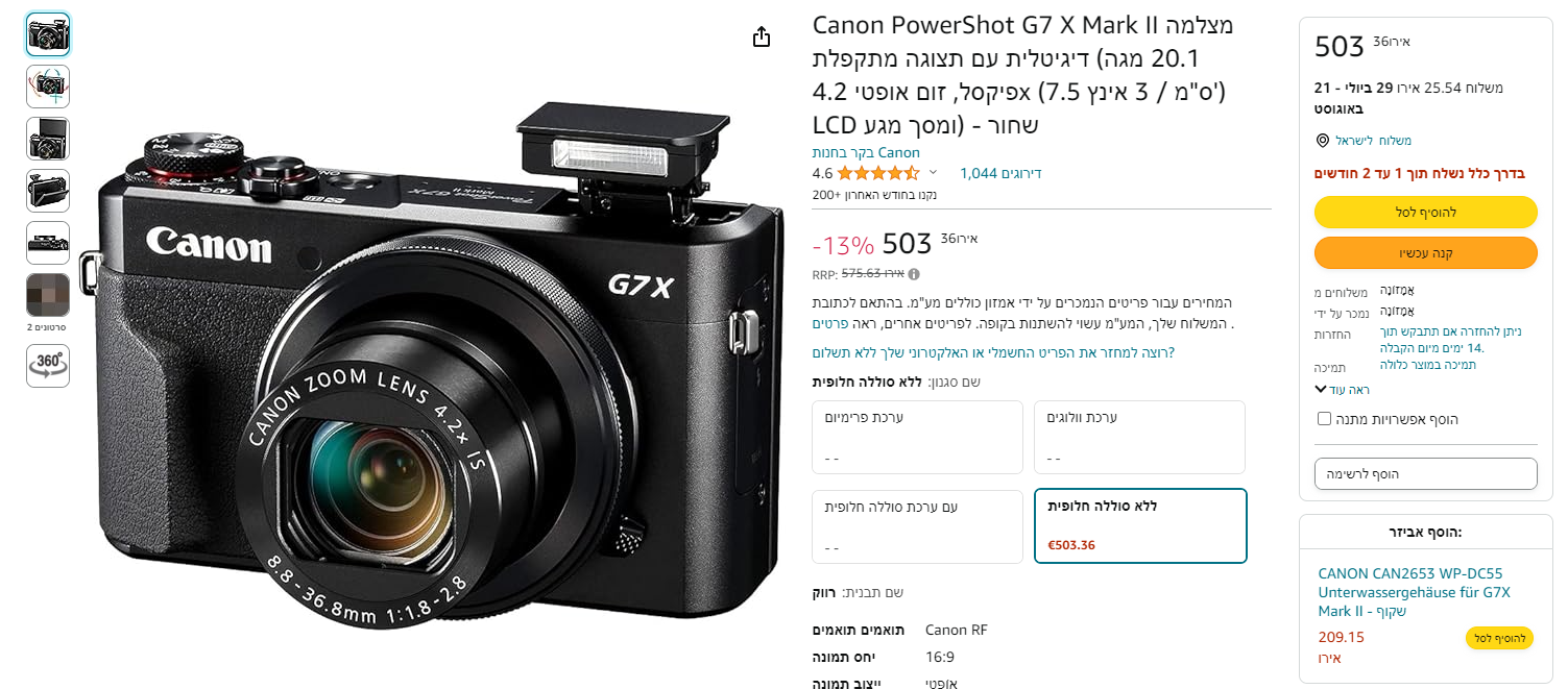 האם מישהו קנה מצלמת G7 של קנון באמזון?