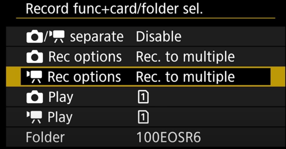 מצלמות עדשות וציוד טכני מצלמה R6- איך מקליטים על 2 כרטיסי זכרון?