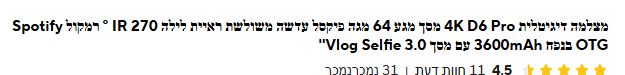 החסרונות - אין מידע על החיישן, לא ידוע האם ניתן לצלם וידאו 4K60FPS.