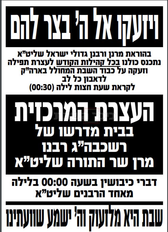 לטובת הציבור כדאי שכל אחד ירשום את המקומות שהוא יודע שמקיימים היום עצרת בחצות לזעוק ולהתפלל את זעקת השבת