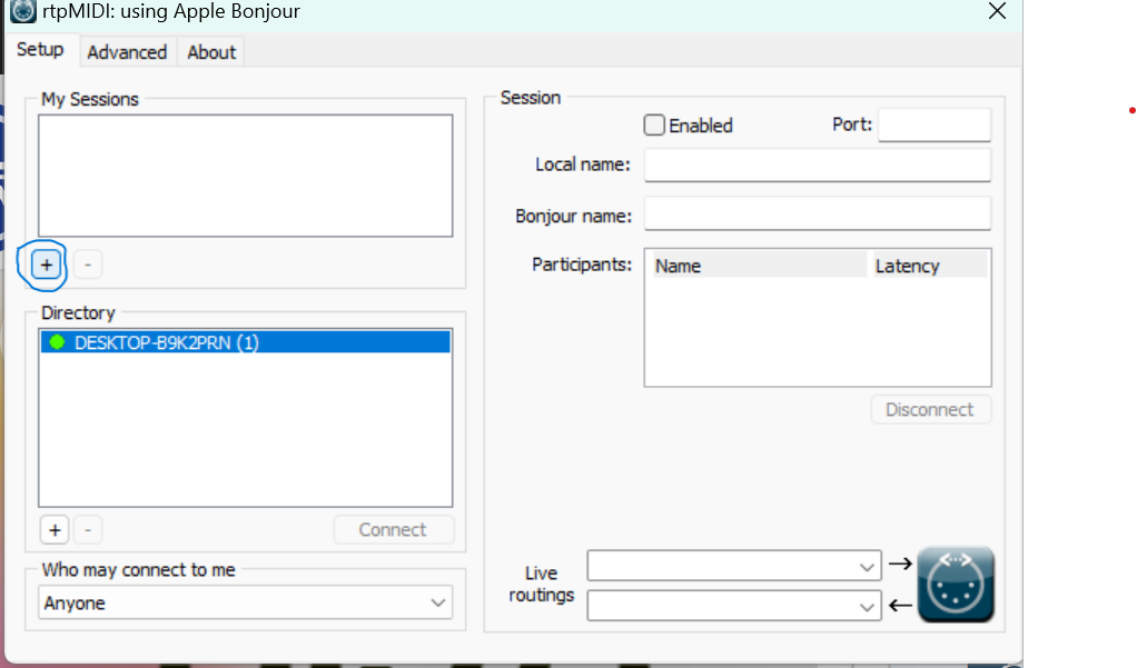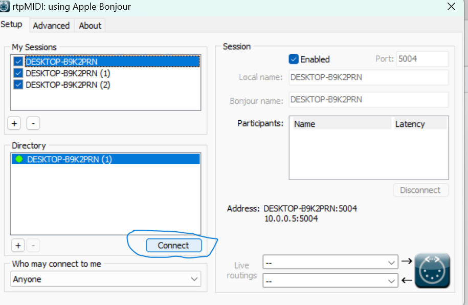 לפתוח את הPiano (או כל מכשיר וירטואלי אחר) ואז נוצר בRTP אפשרות לחיבור במידי