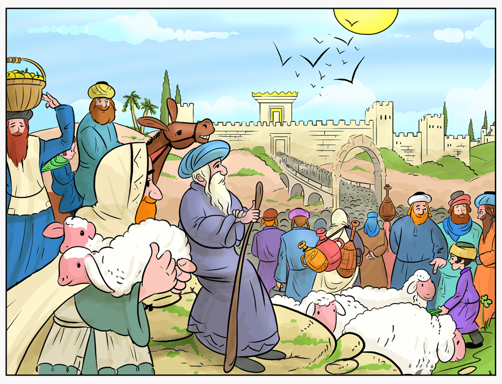 בחלק הקידמי יש קצת עיוות פרספקטיבה. הראש של החמור נראה קרוב יותר מהאיש הרוכב עליו והכבש הקרוב ביותר צריך שיפוץ כלשהו....