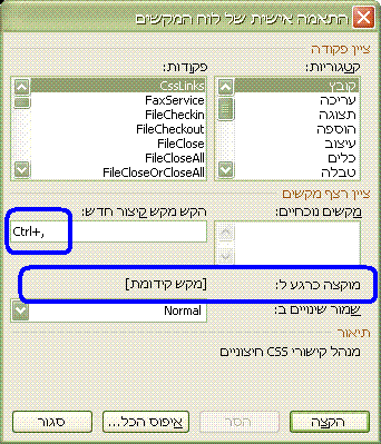 בוורד, בהתאמה אישית של לוח המקשים, כונטרול עם פסיק [הפסיק בעברית והגרשיים] מראה שהוא מוקצה ל"מקש קידומת".