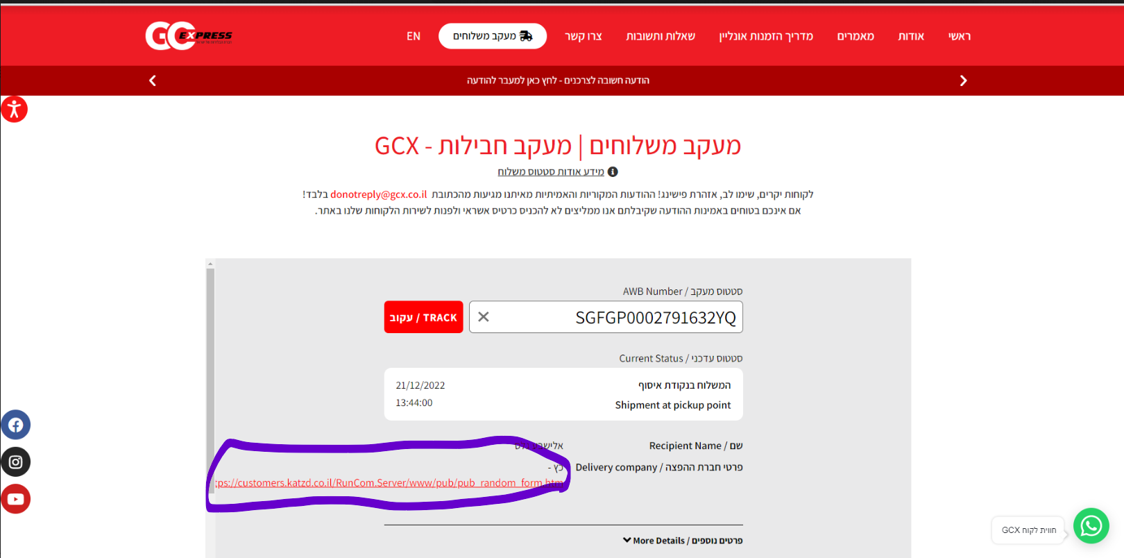 ולא קיבלתי מייל מהחברת משלוחים לאן זה נמסר.